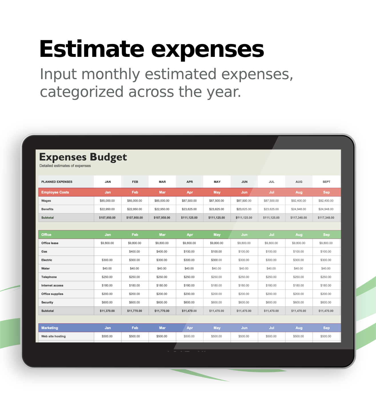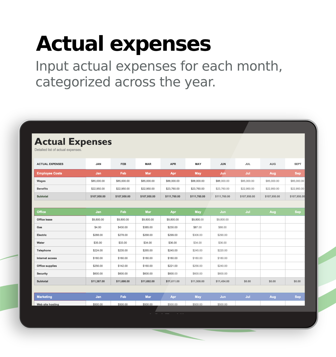 This Expenses Tracker for Excel allows you to track and analyze your monthly budgeted expenses and compare this to your actual expenses.